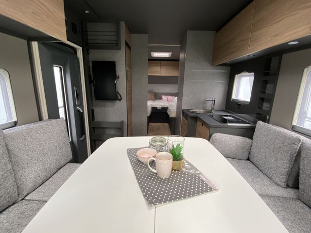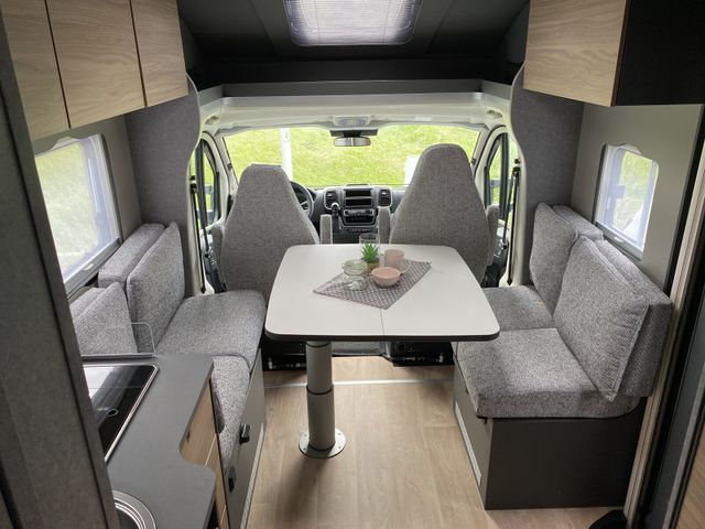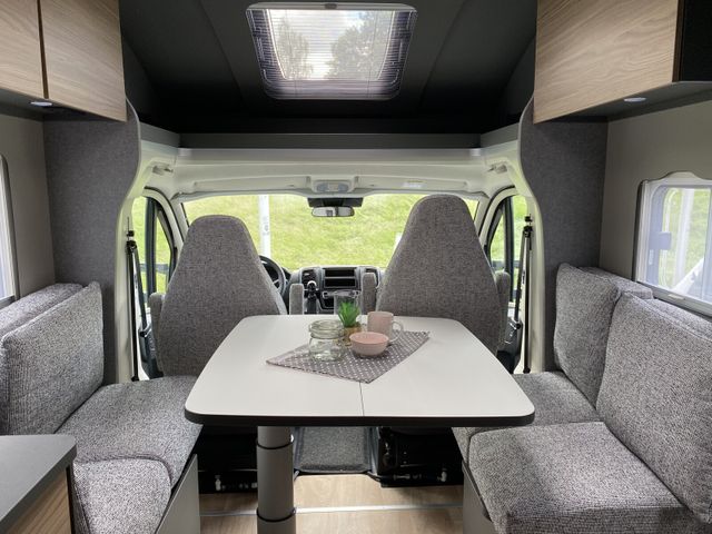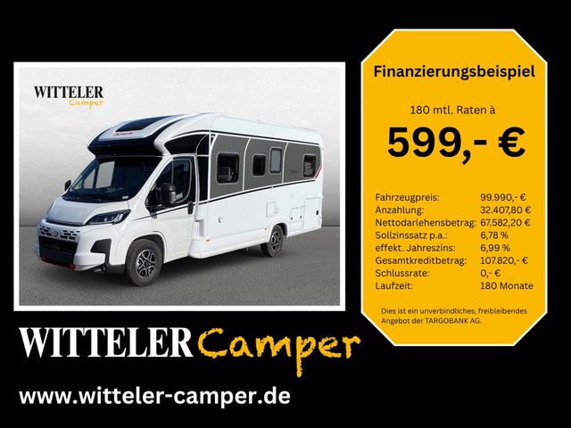 SONDERAUSSTATTUNG: Fiat Ducato Light Tiefrahmen (3.499 kg), MultiJet 180 (2,2 l / 132 kW / 180 PS), 8-Gang Wandler-Automatikgetriebe Auflastung 3.650 kg Vorbereitungskit (Vorbereitung Solar, Vorbereitung Dach-Klimaanlage, Vorbereitung SAT-Anlage, Vorbereitung erste Rückfahrkamera, Vorbereitung zweite Rückfahrkamera) Chassis-Paket (Fahrerhaus Klimaanlage automatisch, Digitaler Tacho mit 7"-Kombiinstrument und Wireless Phone Charger in der Mittelkonsole, Elektrische Feststellbremse, Voll LED Frontscheinwerfer) Family-Paket T 7057 EBL (Wohnraumtür mit Fenster inkl. Verdunkelung und Zentralverriegelung (inkl. Fahrerhaustür), Verdunklungsjalousien im Fahrerhaus, Light Moments: Indirekte Ambientebeleuchtung über den Dachstauschränken, Light Moments: Indirekte Wandflächen-Ambientebeleuchtung, Light Moments: Küchenrückwand beleuchtet, Light Moments: Indirekte Beleuchtung im Badezimmer mit beleuchteter Duschkonsole, Light Moments: Eingangsmodul mit indirekter Beleuchtung, Bettumbau Einzelbetten zu Doppelbett) Assistenz Paket Fiat (Regen- und Lichtsensor mit Abblendautomatik, Notbremsassistent inkl. Fußgängererkennung, Spurhalteassistent, Verkehrszeichen-Assistent, Aufmerksamkeits Assistent, Intelligenter Geschwindigkeis Assistent) Paket One (4,5m Markise) (Flachbildschirmhalter, Integrierte Einlinsen Rückfahrkamera, Cassettenmarkise Omnistor 4,5 m (manuell), Automatische HD SAT Anlage 65 Twin, Flachbildschirm 22" HD TV) GT Design-Paket (Doppelverglaste Rahmenfenster mit Verdunklung & Mückenschutz, Außendesign GT (Heckleuchtenträger mit schwarzem Diffusor, erweiterte Beklebung, Skidplate "rot")) Winterkomfort-Paket Alde (Schalter für Wasserpumpe, Unterbodenleitungen isoliert, Abwassertank isoliert, Abwassertank und -leitungen elektrisch beheizt, Warmwasser-Teppich für das Fahrerhaus, Warmwasserheizung mit Warmwasserboiler, automatischem Ablassventil, Absperrventil für den Schlafraum und digitalem Bedienelement, XPS Aufbau-Isolierung) Wohnwelt Saros Bettenbau Sitzgruppe quer Fenster im Badezimmer Automatische Gasflaschenumschaltung inkl. Crash Sensor, EisEx und Gasfilter Bett abgesenkt Naviceiver Rückfahrkamera