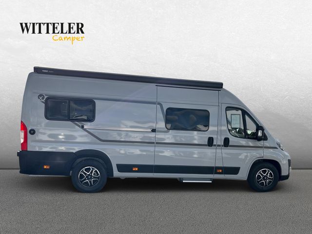 Modell 2025 Motor / Chassis: Fiat Ducato 2,2l Mjet Leistung: 103 kW / 140 PS Getriebe: Automatik zul. Gesamtgewicht: 3500 kg Bett(en): Einzelbetten Sitzgruppe: Mittelsitzgruppe Polster: Aosta Holzdekor: Typex