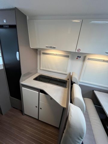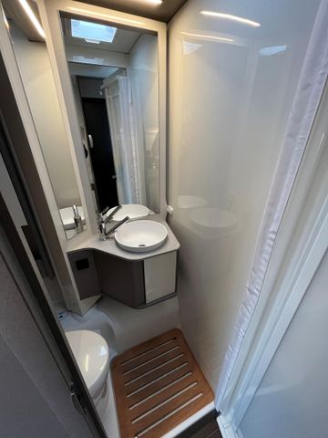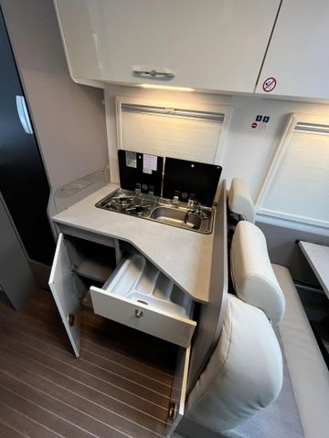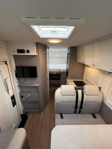 SONDERAUSSTATTUNG: Fiat Ducato 2,2 l Multi-Jet - 103 kW | 140 PS - Automatikgetriebe (Light Chassis) Lackierter Stoßfänger in Wagenfarbe inkl. Nebelscheinwerfer und Skid Plate schwarz Chassis Design Paket (inkl. 16" Alufelge bicolor heavy) (Lenkrad und Schaltknauf in Echtleder, Armaturenbrettveredlung mit Techno-Trim Design, FIAT 16" Alufelgen bicolor Heavy Chassis) Komfort Paket (2. Außenstauraumklappe (Größe modellabhängig), Fliegengittertür, Garderobenhaken, Steckdose im Küchenblock, Steckdose in der Garage, Holzlattenrost in der Dusche) Fenster in T-Haube Rahmenfenster Abwassertank isoliert Markise (manuell), 4 m, Gehäuse in schwarz Faltverdunklung für Fahrerhaus Bettenumbau Sitzgruppe (Einzelbett) Vorbereitung Solaranlage Vorbereitung Dachklimaanlage Multimedia Paket Compact (Moniceiver Apple CarPlay | Android Auto ohne integrierte Navigationsfunktion, Rückfahrkamera doppelt) TV Paket (22" Flachbildschirm) (Satellitenantenne (vollautomatisch, 65cm), 22" Flachbildschirm inkl. Halter) Design Applikation Heck Design Paket type X (type X Abklebung innen und außen, Dachschrankklappen in Hochglanz Magnolia, Wohnwelt Emilia) Fahrradträger