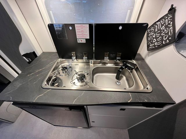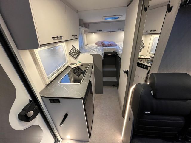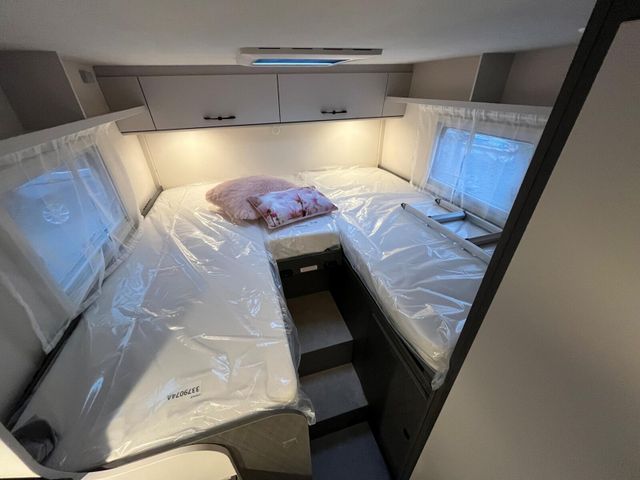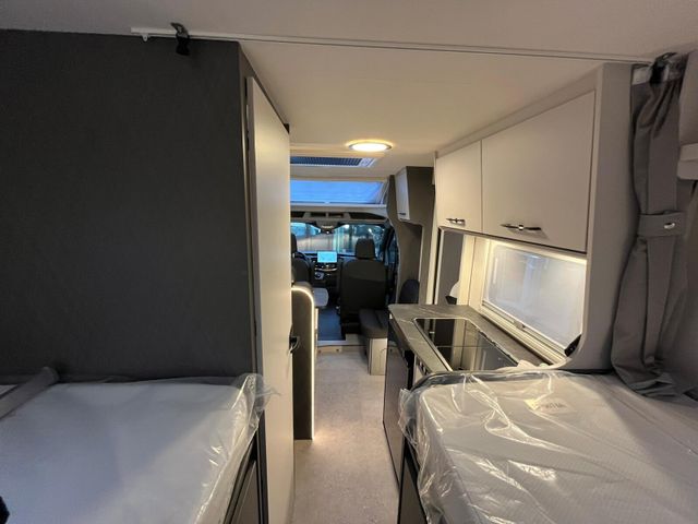 Modell 2026 Motor / Chassis: Ford Transit 2,0l TDCi Leistung: 121 kW / 165 PS Getriebe: Automatik zul. Gesamtgewicht: 3500 kg Bett(en): Einzelbetten Sitzgruppe: Mittelsitzgruppe Polster: Monza Holzdekor: Iconic