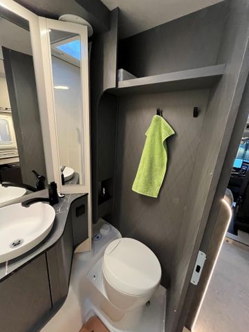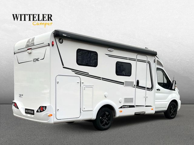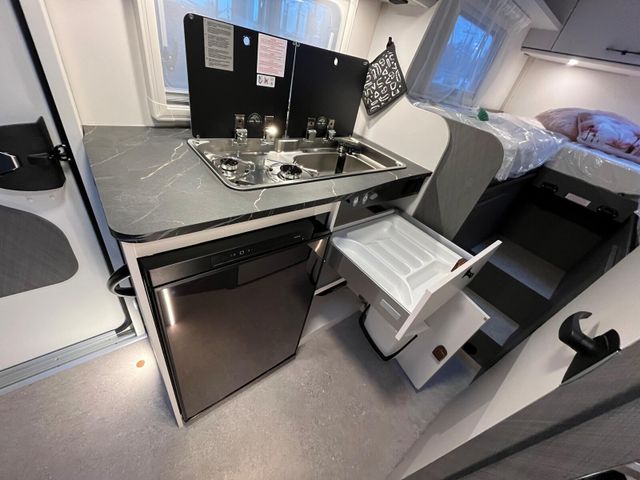 SONDERAUSSTATTUNG: Automatikgetriebe iCONiC Line (iCONiC Line Abklebung innen und außen, Dachschrankklappen in Sella Light, Wohnwelt Monza (schwarz)) 2.0l TDCi Ford Ecoblue mit 121 kW|165 PS - EURO 6e Complete Selection (Chassis Paket, FORD 16" Alufelgen, schwarz, Fenster in T-Haube, Rahmenfenster, Abwassertank isoliert, Markise (manuell), 4 m, Gehäuse in anthrazit, Vorbereitungen für TV Kabel 12V und TV Halterung, Vorbereitung Dachklimaanlage, Vorbereitung Solaranlage) Technologiepaket 15 (Pre-Collision Assist, kamera- und radar-basiert, Verkehrsschild-Erkennungssystem, erweitert, Geschwindigkeitsregelanlage, adaptiv (für Schaltgetriebe), Geschwindigkeitsregelanlage, adaptiv mit Stop & Go Funktion (für Automatikgetriebe), Außenspiegel elektrisch einstellbar, anklappbar & beheizbar, Navigationssystem) Dieselheizung Combi 6D Anhängerkupplung Vorbereitung Faltverdunklung für Fahrerhaus Bettenumbau Sitzgruppe (Einzelbett) Gasaußensteckdose Wohnwelt Monza (schwarz)